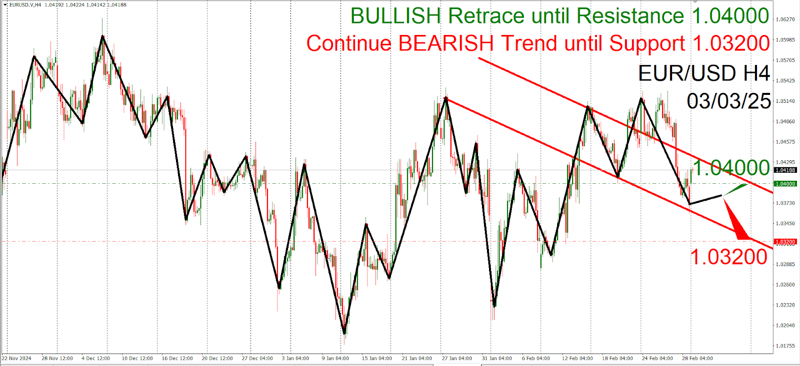 - Trading Outlook: If the price remains below 1.04000, selling opportunities exist. A break above 1.04000 could signal a bullish trend reversal.